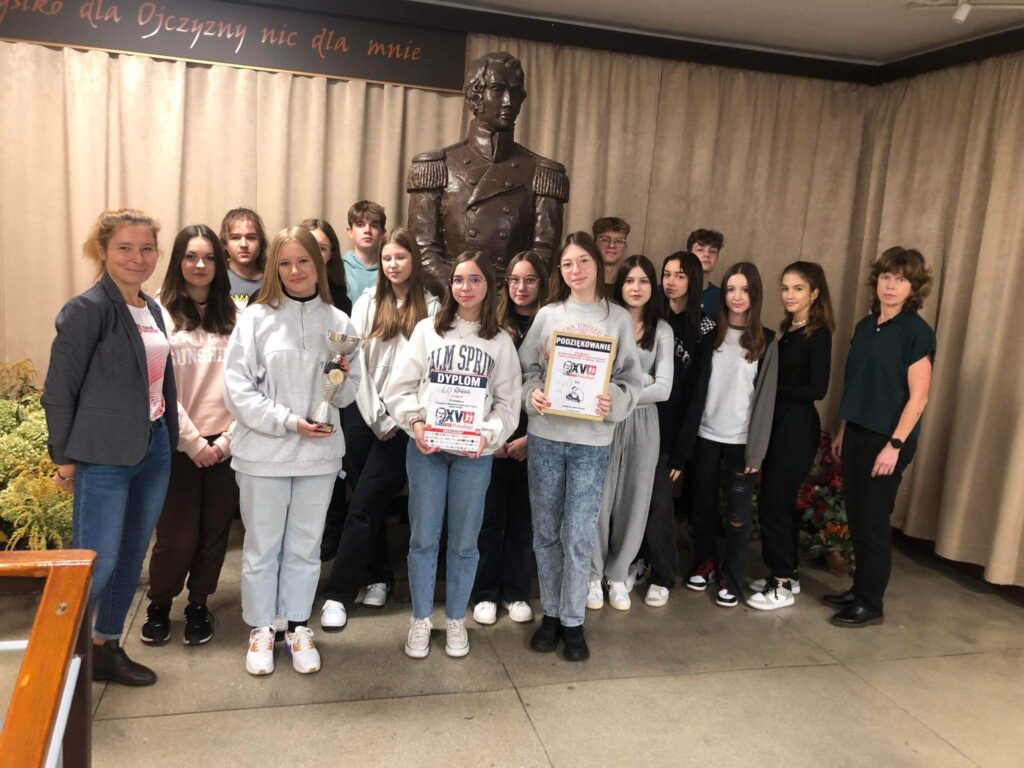 Wolontariusze i biegacze z XVIII Biegu Pułaskiego. Dyplom i puchar dla LO Warka za zajęcie II miejsca w kategorii Najlepsza Instytucja w Warce!