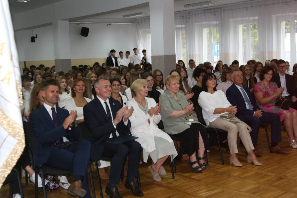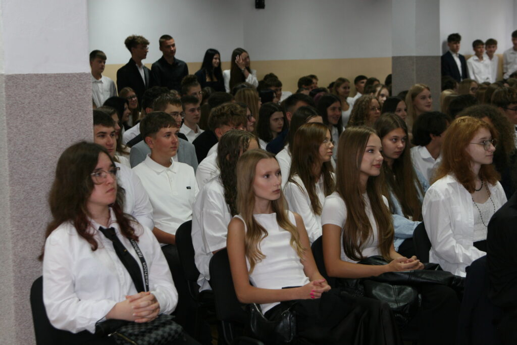Z gratulacjami i życzeniami wielu sukcesów zwrócił się do nauczycieli i uczniów reprezentant Rady Starostwa Powiatowego w Grójcu, pan Andrzej Zaręba, który odczytał także list od Starosty Powiatu Grójeckiego, p. Krzysztofa Ambroziaka. Pani Dyrektor przedstawiła uczniom wszystkich nauczycieli liceum, a szczególnie wychowawców klas pierwszych. Podano informacje, do jakiej sali zostały przydzielone na spotkania z wychowawcami poszczególne zespoły.