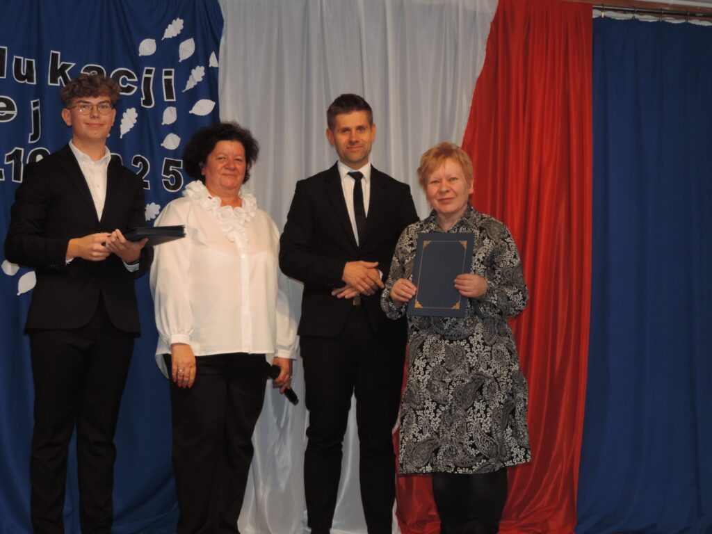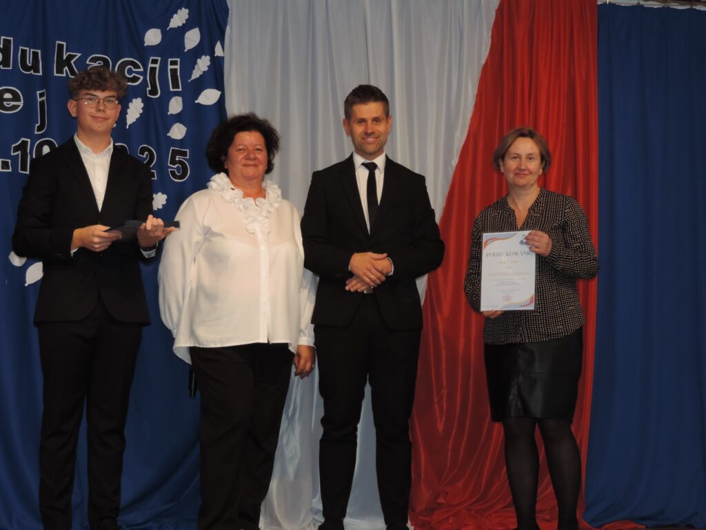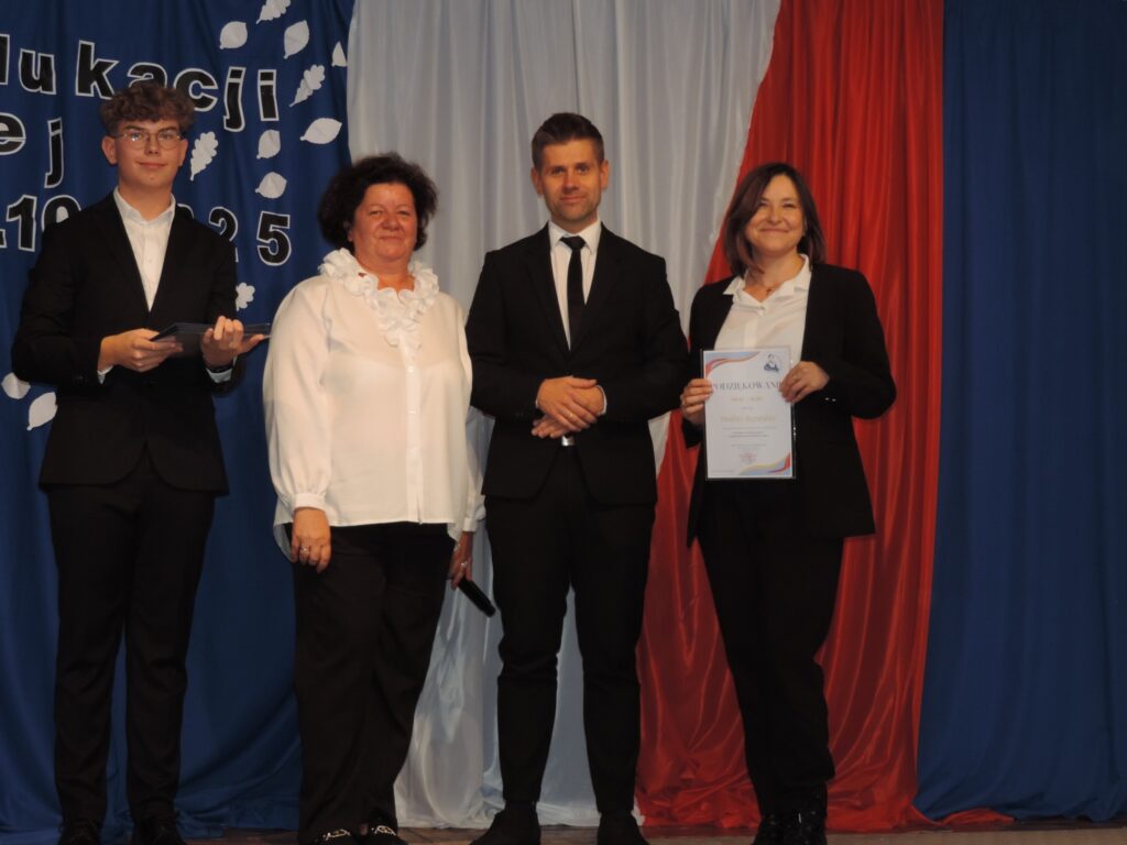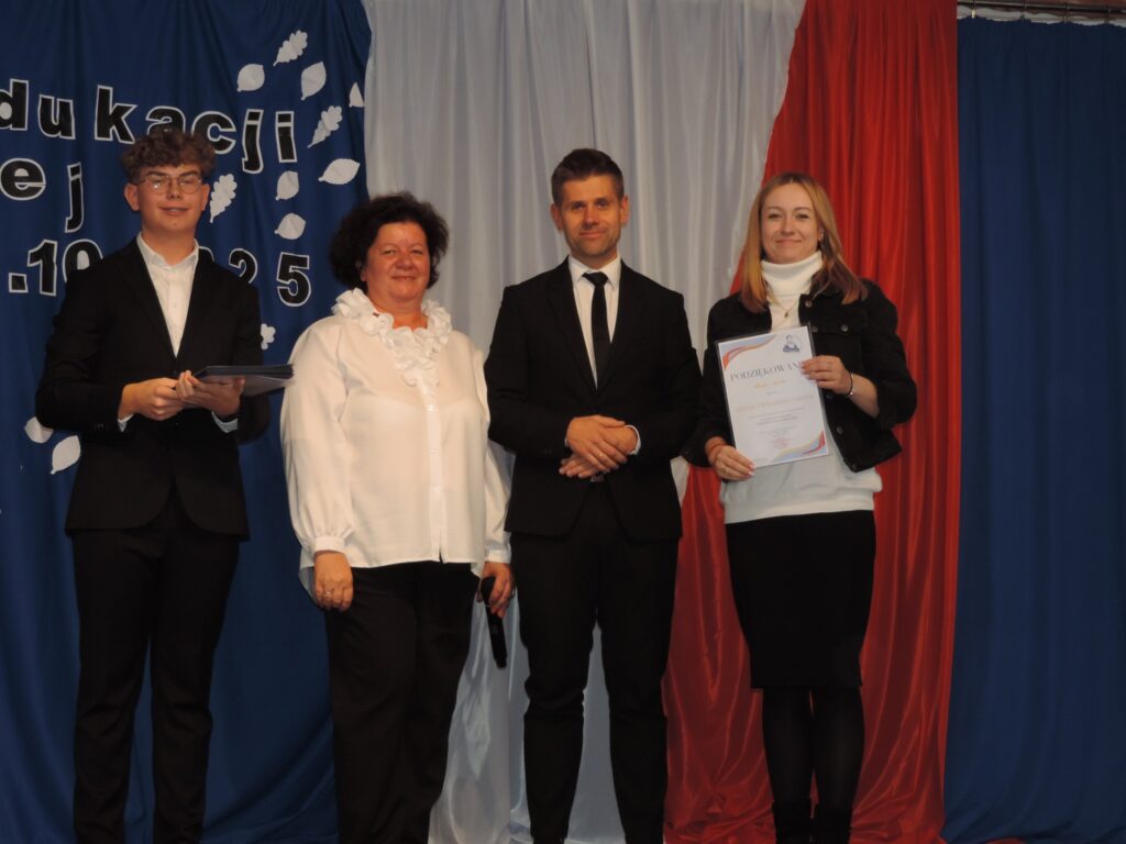 Po występach artystycznych pani dyrektor Ewa Karkowska otrzymała kwiaty od przedstawicieli Rady Rodziców, jako wyraz podziękowania dla wszystkich nauczycieli za trud i serce, które włożyli w nauczanie. Wręczone zostały także nauczycielom i pracownikom naszej szkoły nagrody dyrektora i dyplomy podziękowania.