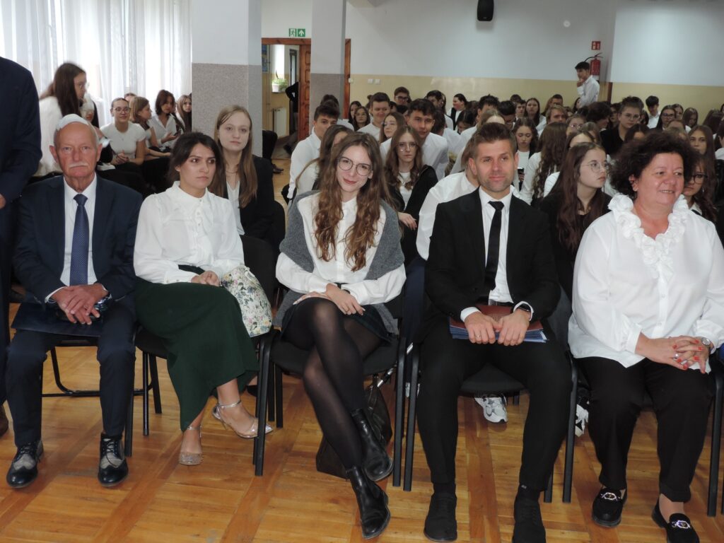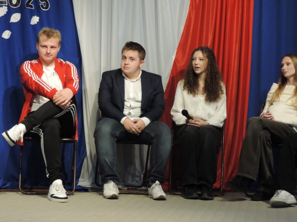 Prowadzący Mateusz Sabała zaprosił do zabrania głosu przewodniczącego Samorządu Uczniowskiego Jakuba Cieślaka, który w krótkim przemówieniu podziękował nauczycielom za ich codzienny trud, wyrozumiałość i cierpliwość. Następnie widzowie zostali zaproszeni do obejrzenia części artystycznej w wykonaniu uczniów klas pierwszych, którzy przygotowali swoje programy w formie konkursu.