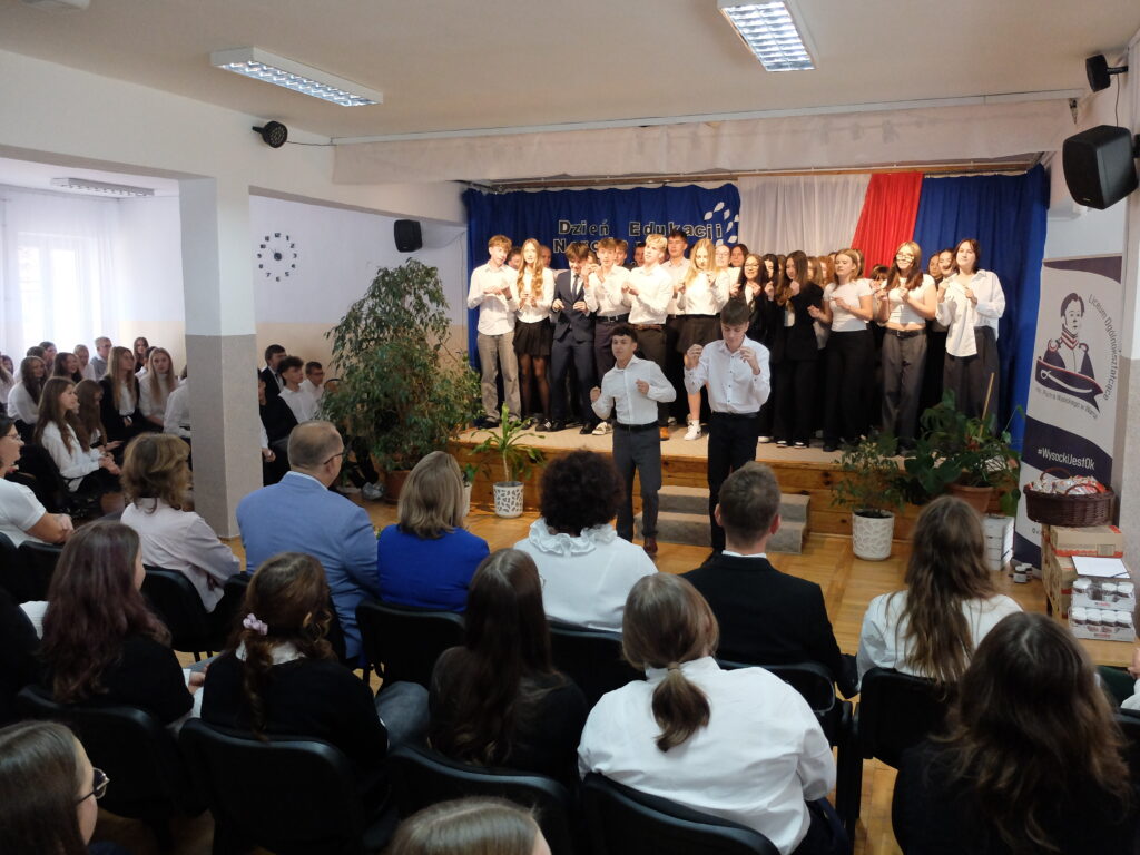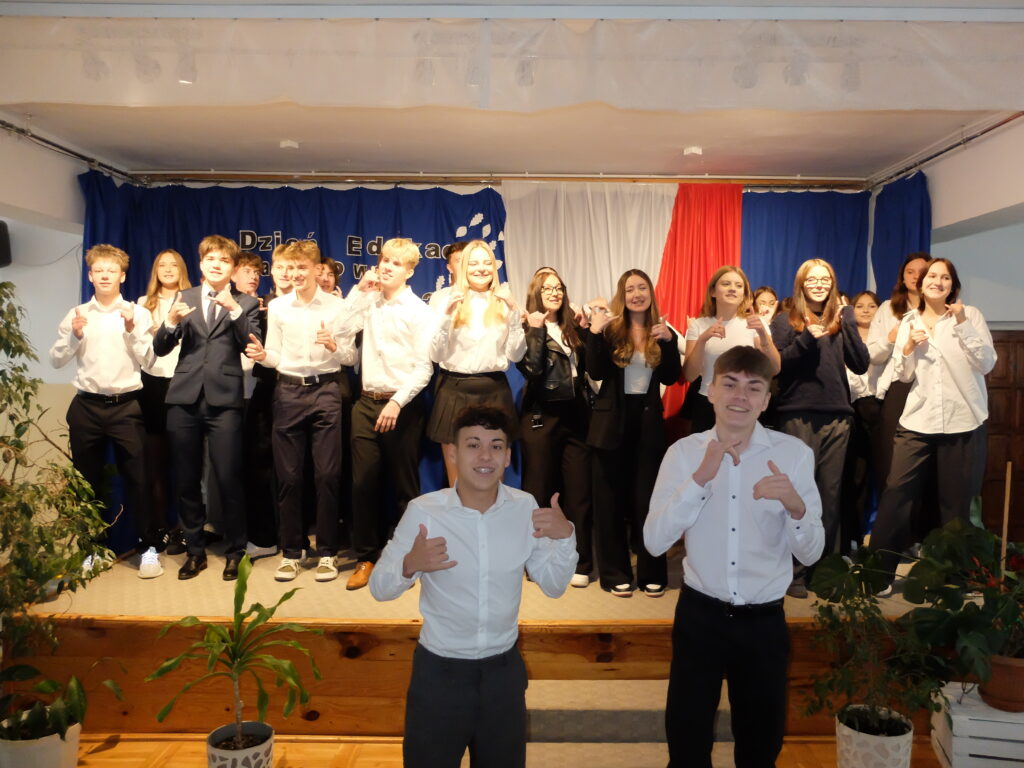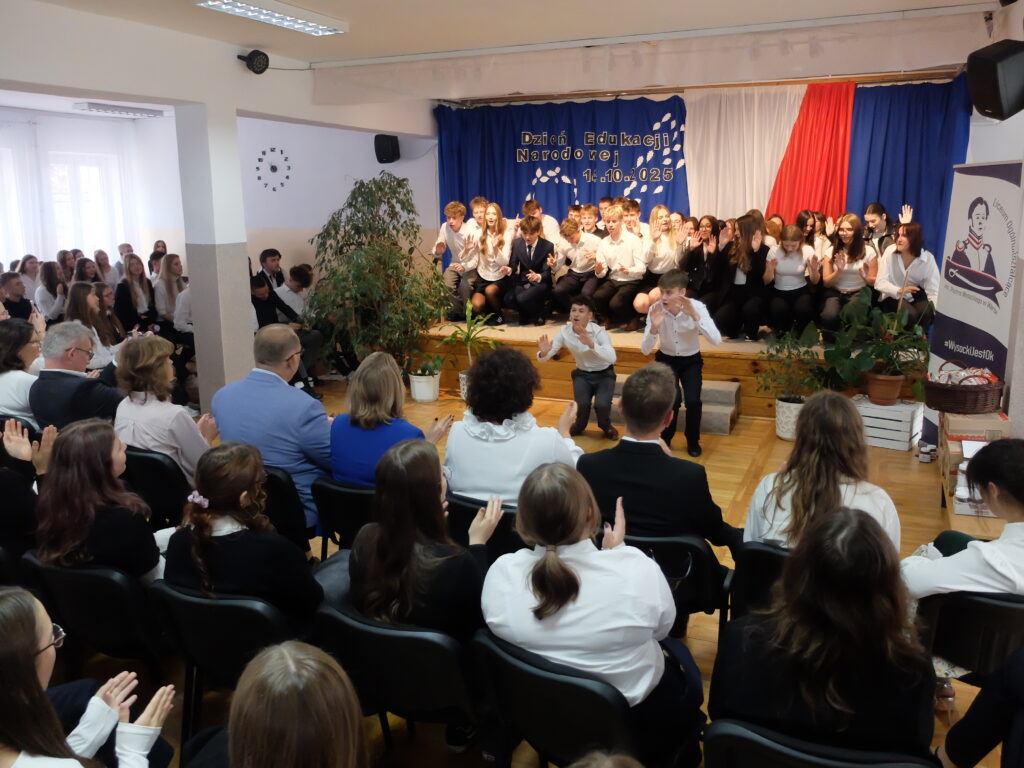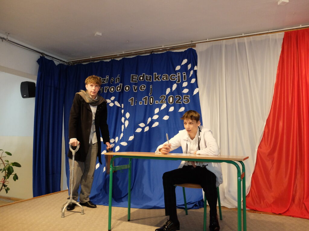 Dnia 15.10.2025 roku z okazji Dnia Edukacji Narodowej uczniowie naszego liceum zaprezentowali swoje nieprzeciętne umiejętności aktorskie, taneczne i muzyczne w zróżnicowanych tematycznie występach artystycznych.
