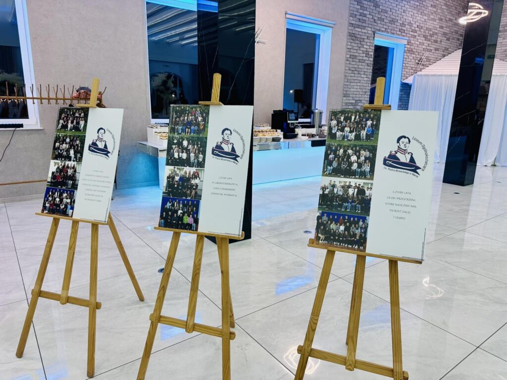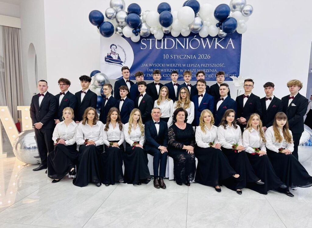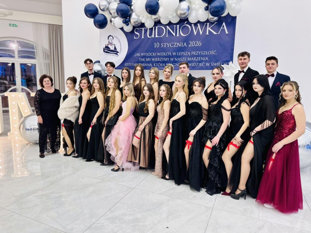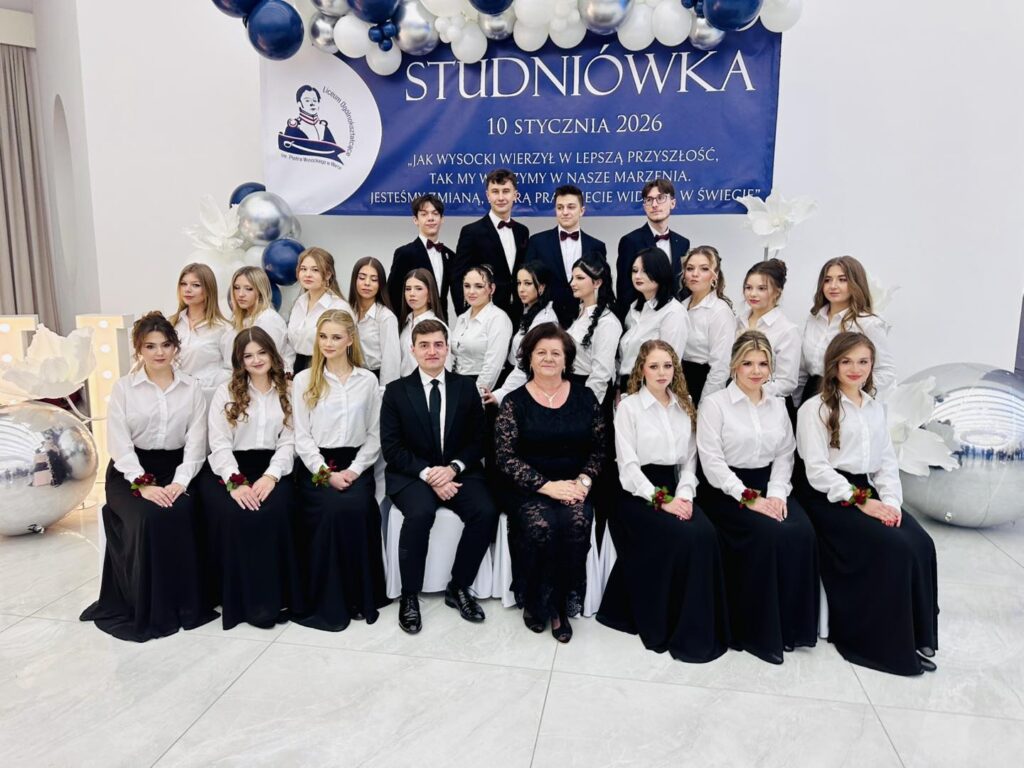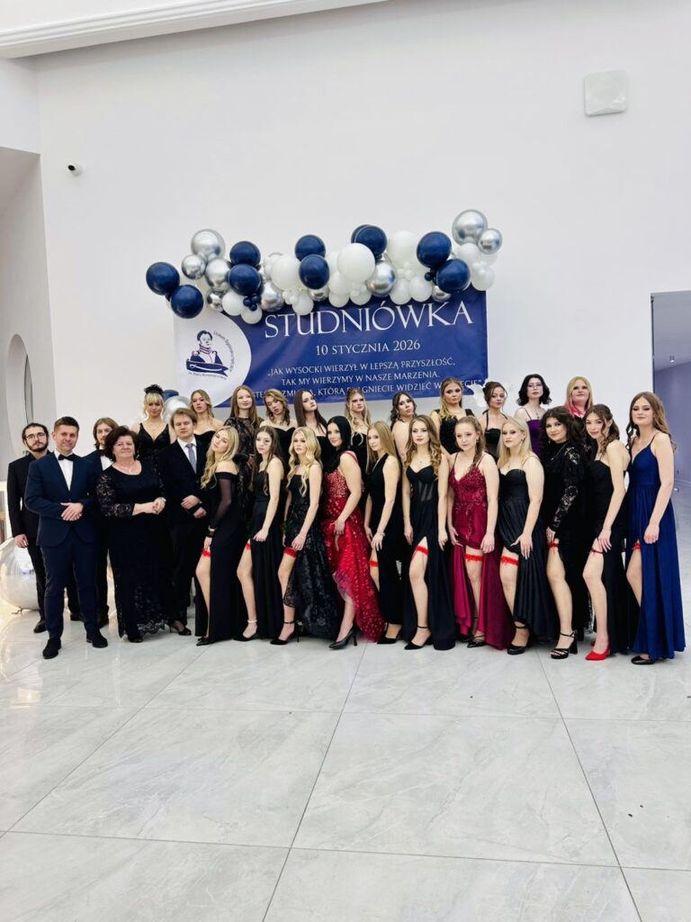 Jak przystało na liceum noszące imię Piotra Wysockiego, nie zabrakło również symbolicznego akcentu – patron szkoły dosłownie „ożył”, by zatańczyć poloneza z Panią Dyrektor. Ten moment wywołał zachwyt i uśmiechy, a wspólny polonez maturzystów z nauczycielami i zaproszonymi gośćmi stał się pięknym symbolem jedności całej szkolnej społeczności. Po wykwintnej kolacji i szalonej zabawie na parkiecie nadszedł czas na kolejny magiczny punkt programu. Na salę wjechał imponujący tort w blasku zimnych ogni, a przy nim zaprezentowano pokaz zdjęć podsumowujących cztery lata licealnych przygód. Wieczór studniówkowy urozmaicił też program artystyczny przygotowany przez uczniów, który dostarczył wszystkim mnóstwo radości. Szczególne atrakcje to quiz i jego kategorie pytań „ z czapki” i wiedzy o LO oraz wspólne wykonanie przez maturzystów i Dyrektora Gminnej Instytucji Kultury „Dworek na Długiej” pana Andrzeja Zaręby piosenki „Pokolenie” – znanej z repertuaru Kombi, które niosło mocny przekaz i nabrało wyjątkowego znaczenia. Śmiech, wspomnienia i wzruszenia mieszały się w jedno, tworząc atmosferę, której nie da się opisać jednym słowem. Zabawa przy stołach, tańce do białego rana i wspomnienia, które zostaną na zawsze – tak właśnie można podsumować studniówkę maturzystów Liceum im. Piotra Wysockiego w Warce. To był wieczór, który jeszcze długo będzie powracał w rozmowach i sercach jego uczestników.